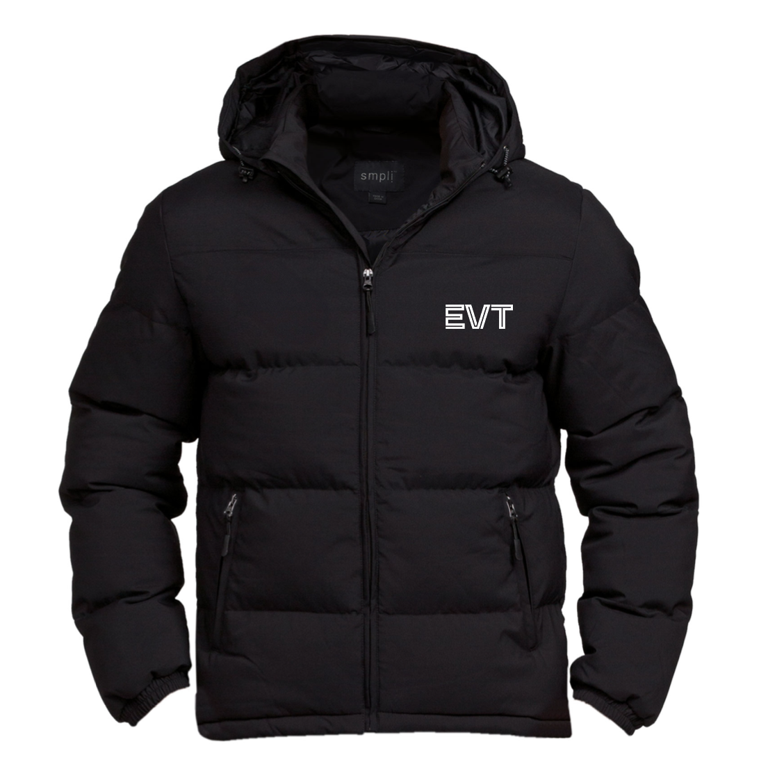 Unisex Puffer Jacket. Embroidered with EVT logo.